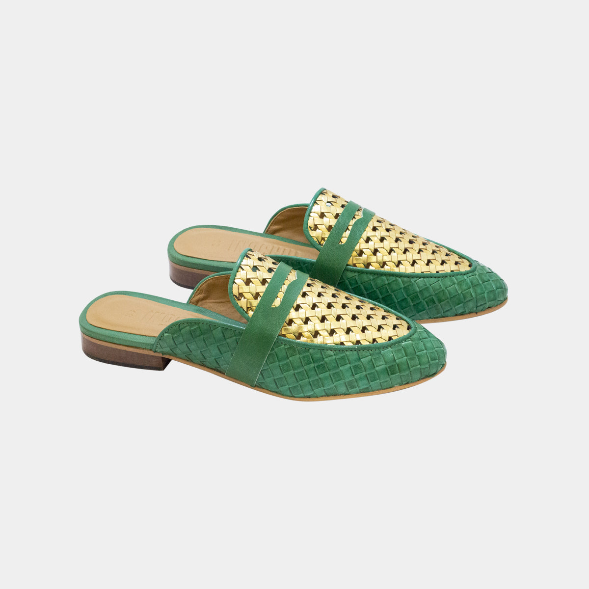 The new collection brings together details inspired by different eras to create something new. Made in India, these smooth leather mules are topped with an exaggerated version of the house signature in gold handwoven interlaced leather. They're set on a comfortable heel with extra cushioning. Pair yours with everything you wear.